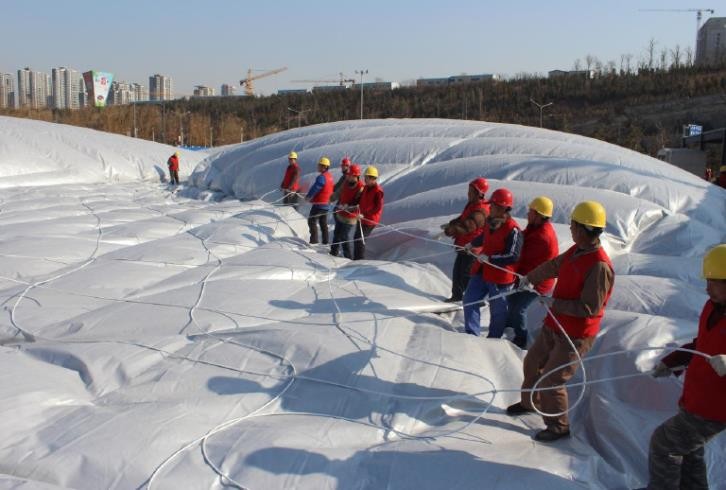 4.运用凉且枯燥的空气来给双层覆膜充气